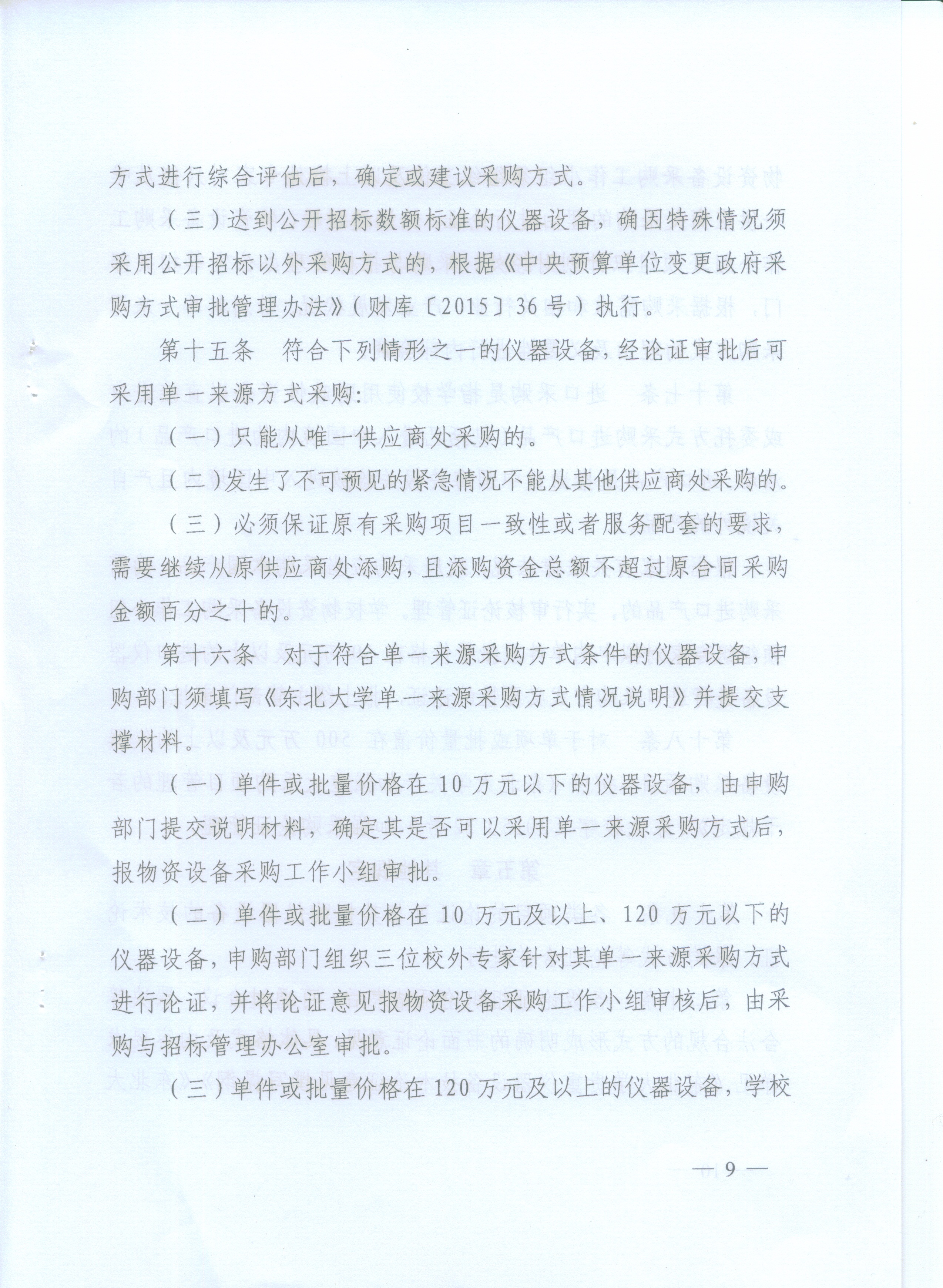 关于印发《东北大学仪器设备申购论证管理办法(暂行)》的通知