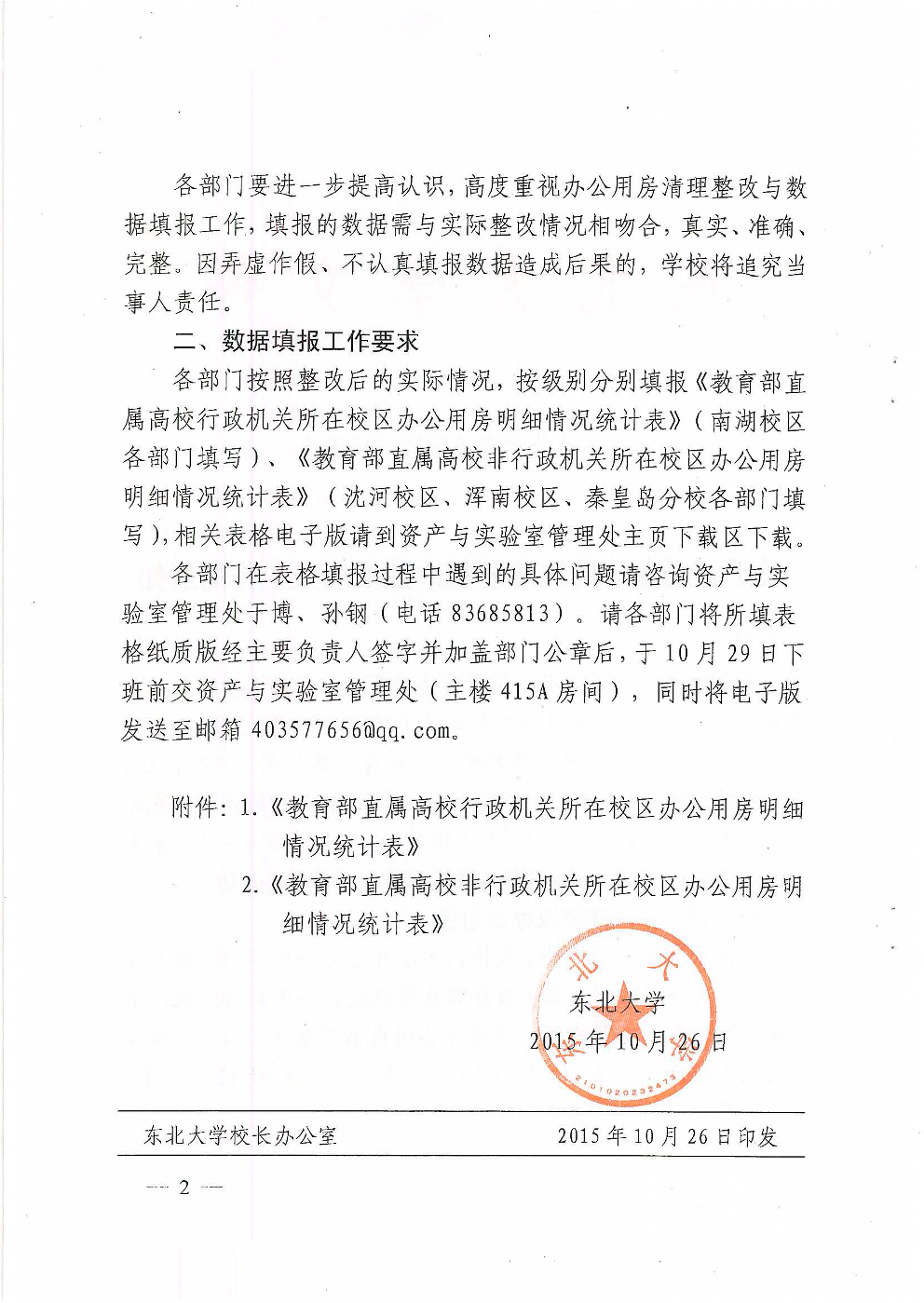 关于开展办公用房清理整改数据填报工作的通知