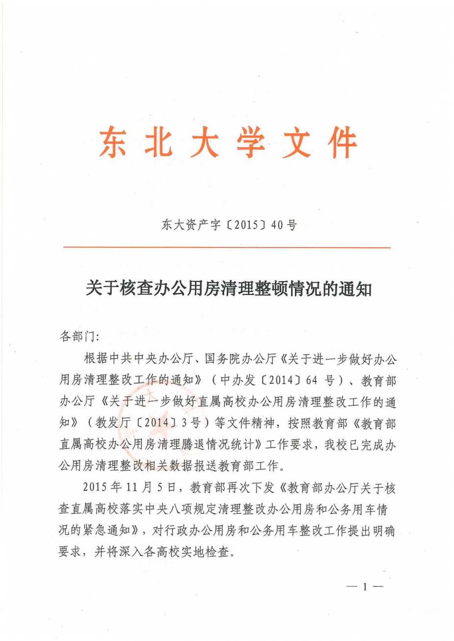 关于核查办公用房清理整顿的通知