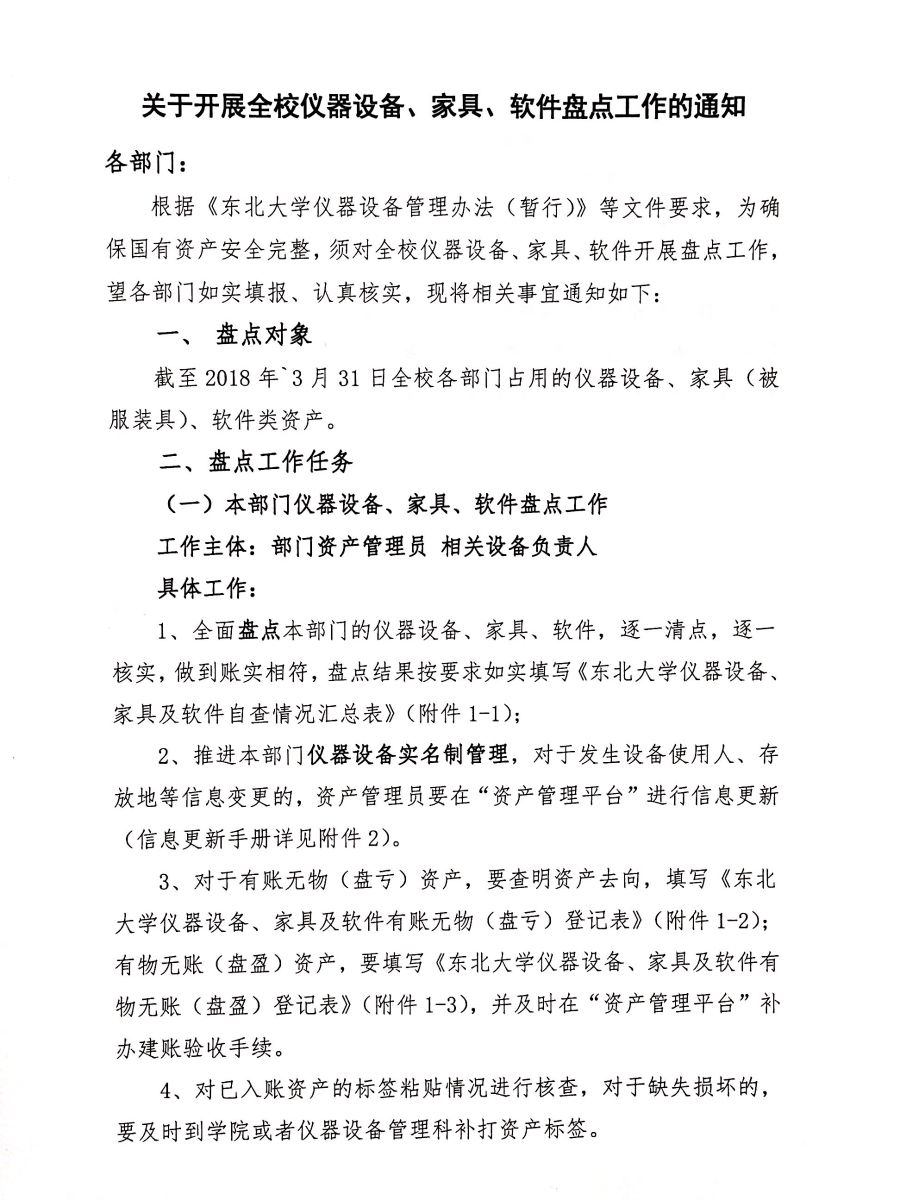 关于开展全校仪器设备、家具、软件盘点工作的通知
