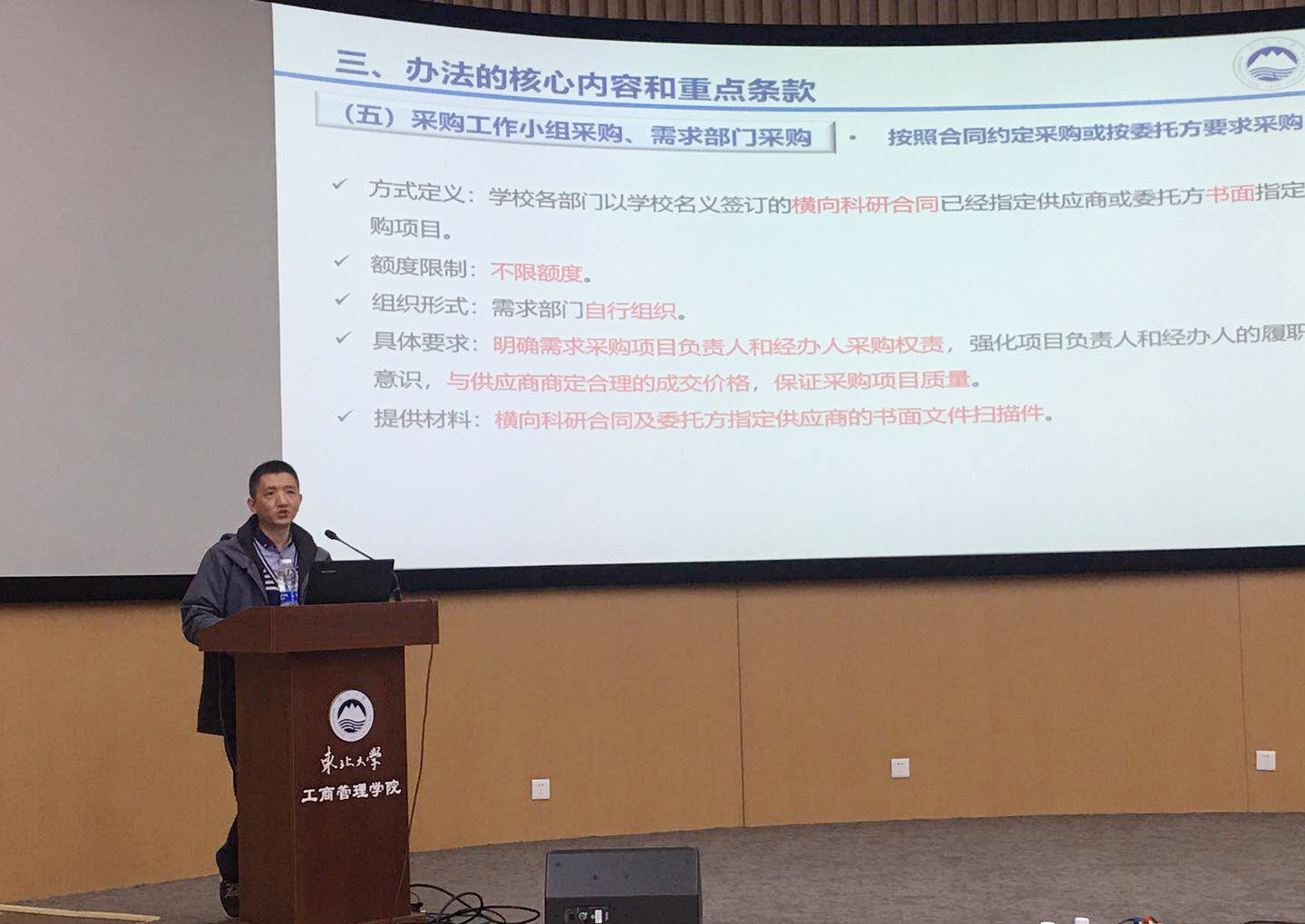 本次培训由采购与招标管理办公室常务副主任为大家详细解读了《东北大学采购管理办法(修订)》。同时邀请政府采购领域的资深评审专家徐建有老师为大家讲解了如何科学合理合规的确定采购需求、编制采购文件,以及履约验收的相关注意事项。