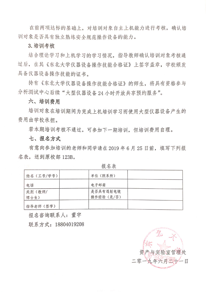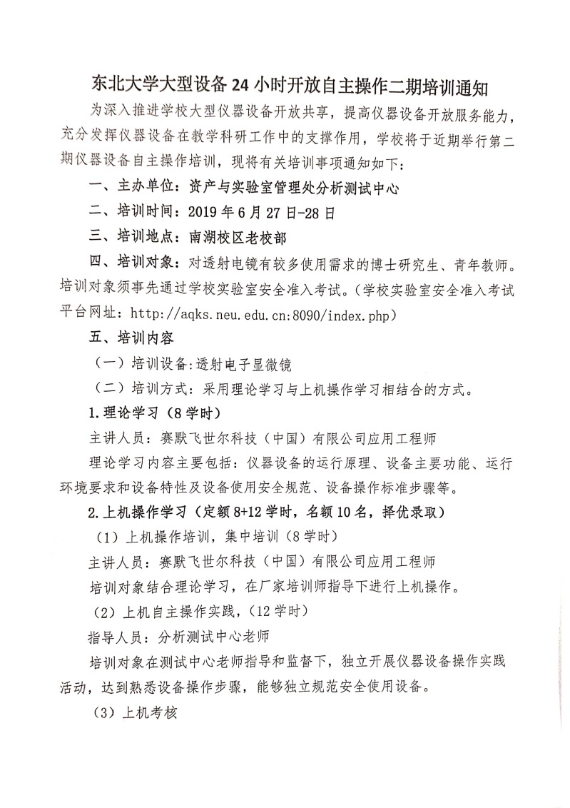 东北大学大型设备24小时开放自主操作二期培训通知