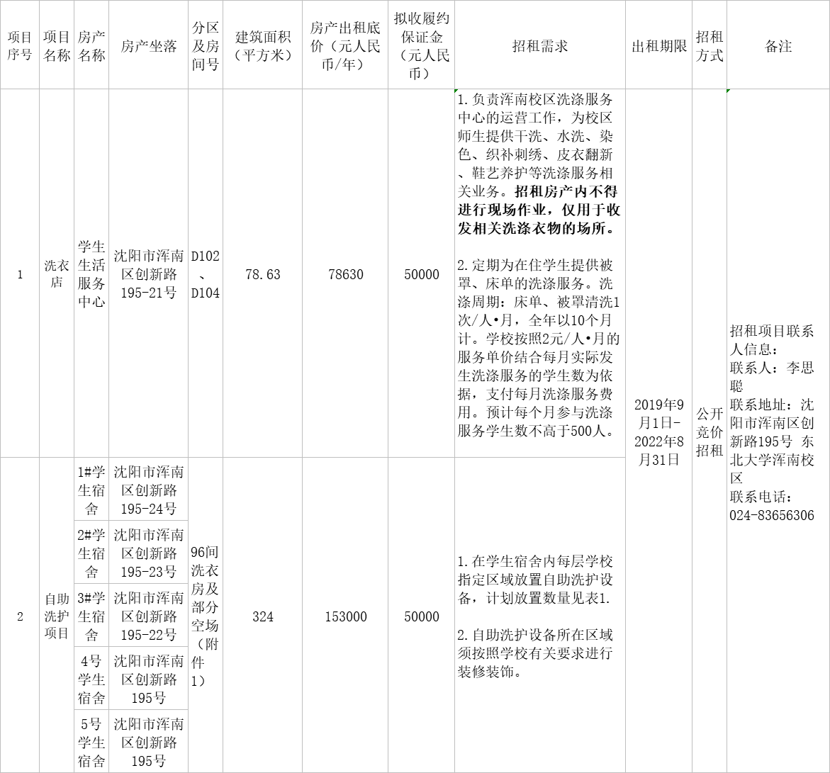 东北大学房产公开招租公告(洗衣项目)(20190731)