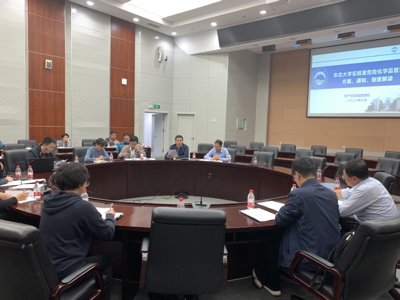 发布时间:2020-09-30 点击次数:790 发布人:9月29日下午,资产与实验室管理处、安委会办公室在主楼824组织召开实验室安全工作会议,布置学校危险化学品安全专项整治工作并落实迎接沈阳市安委会办公室检查工作,各学院、重点实验室主管实验室安全副院长、安全员参加会议。会议由资产与实验室管理处负责人主持。