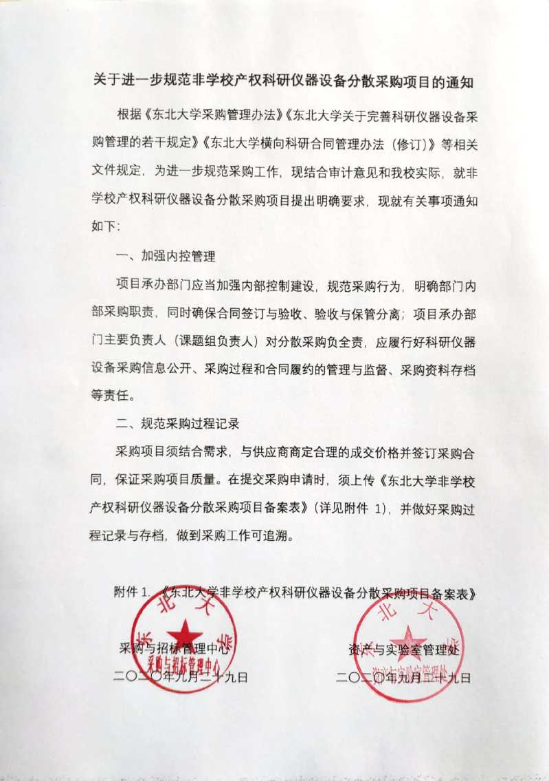 东北大学非学校产权科研仪器设备分散采购项目备案表.docx