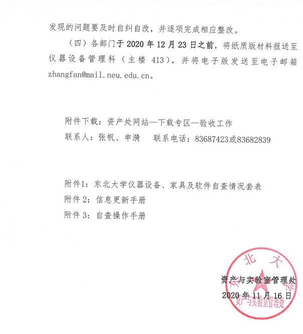 附件1-1:东北大学仪器设备及家具自查情况汇总表.doc附件1-2:东北大学仪器设备及家具有账无物(盘亏)登记表.doc附件1-3:东北大学仪器设备及家具有物无账(盘盈)登记表.doc附件1-4:东北大学仪器设备及家具出租出借登记表.docx附件2:信息更新手册.docx附件3:自查操作手册.docx