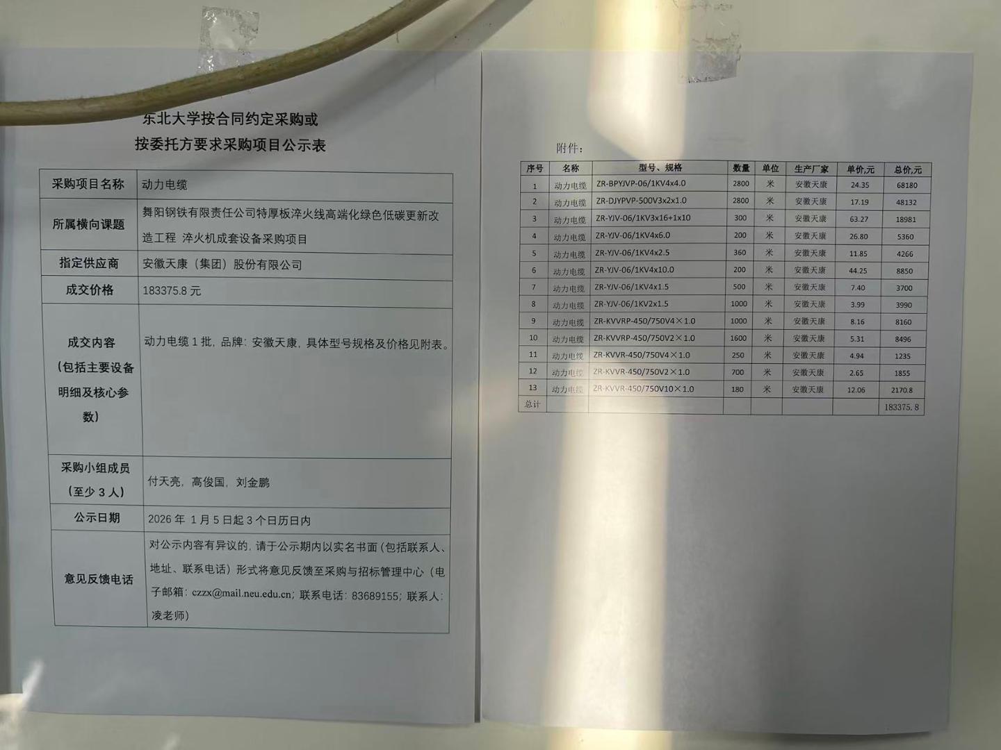 四、成交内容:动力电缆1批,具体型号规格及价格见下表。