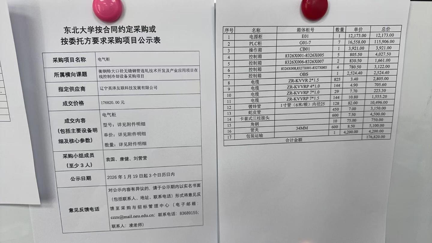 对公示内容有异议的潜在供应商,请于公示期内以书面形式(包括联系人、地址、联系电话)将意见实名反馈至东北大学采购与招标管理中心(联系电话:024-83689155;联系人:凌老师)。