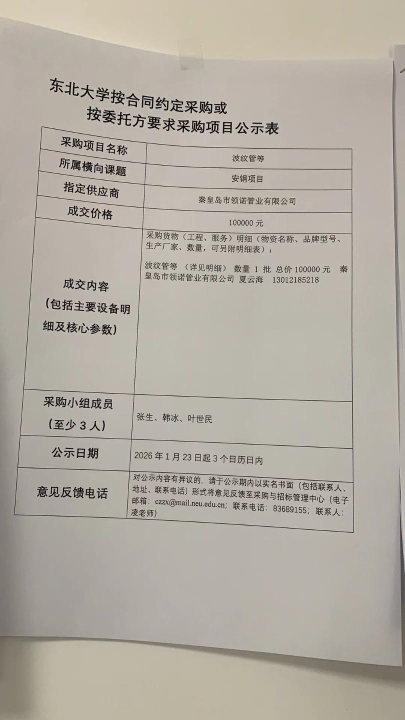 对公示内容有异议的潜在供应商,请于公示期内以书面形式(包括联系人、地址、联系电话)将意见实名反馈至东北大学采购与招标管理中心(联系电话:024-83689155;联系人:凌老师)