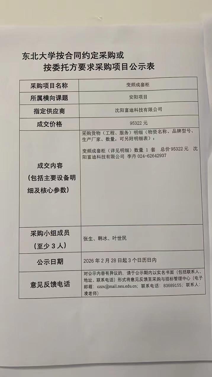 变频成套柜“按合同约定采购”公示