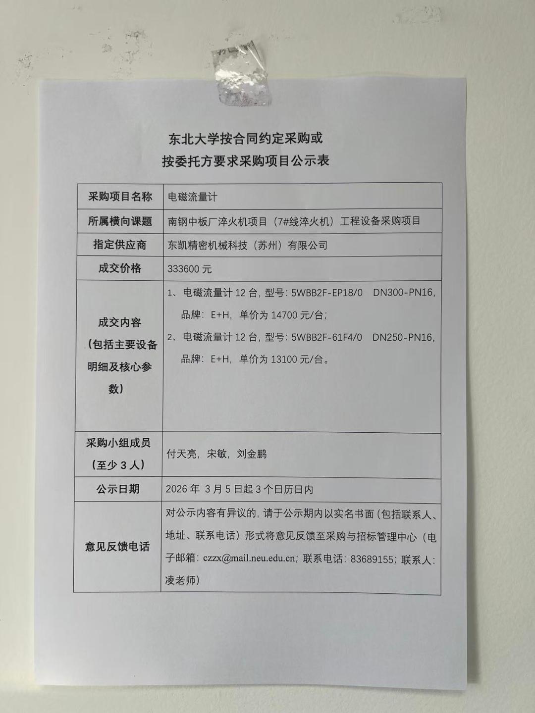 电磁流量计项目“按合同约定采购”公示